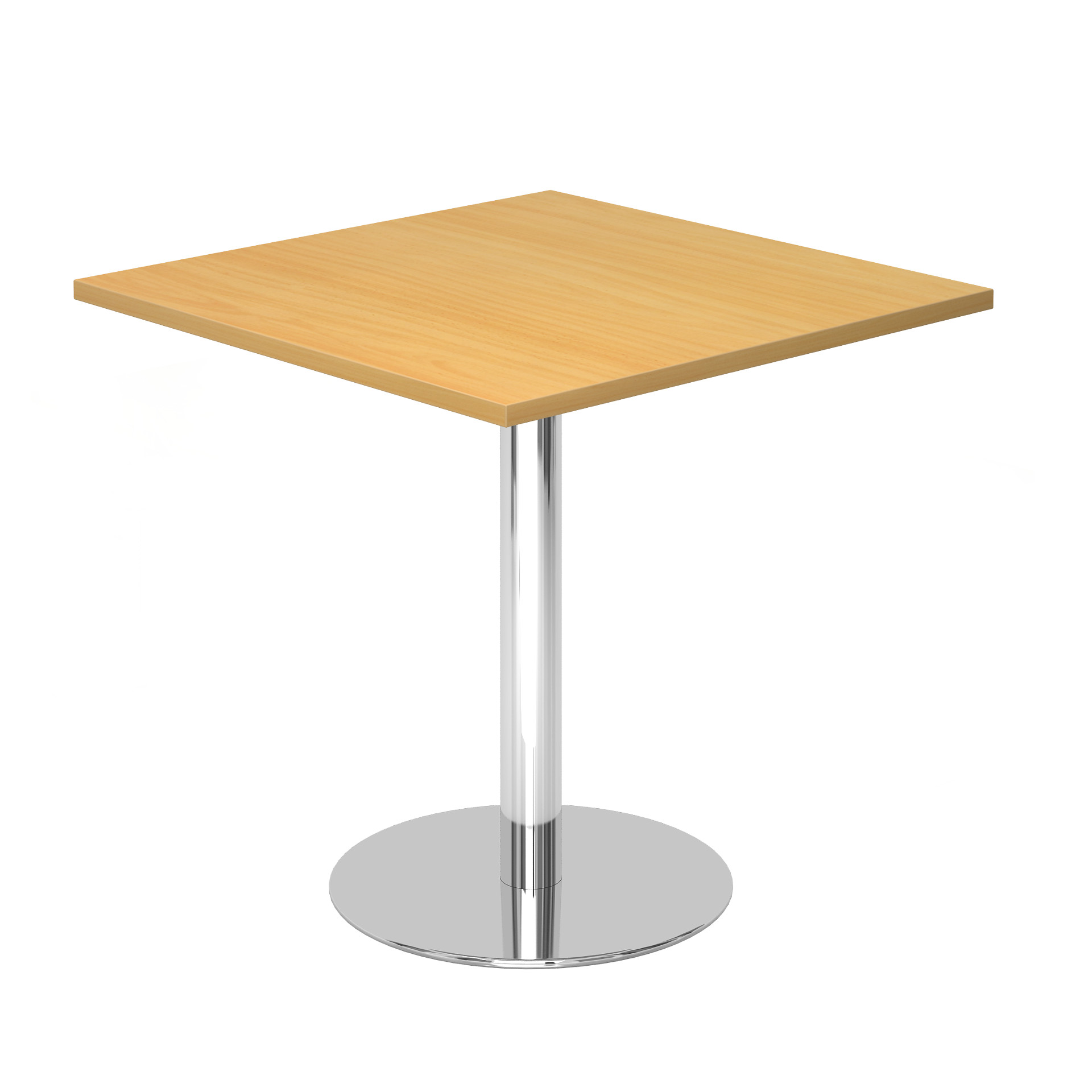 Tischplattenstärke 25 mm. Tellerfuß-Ø 500 mm. Säule und Tellerfuß verchromt.