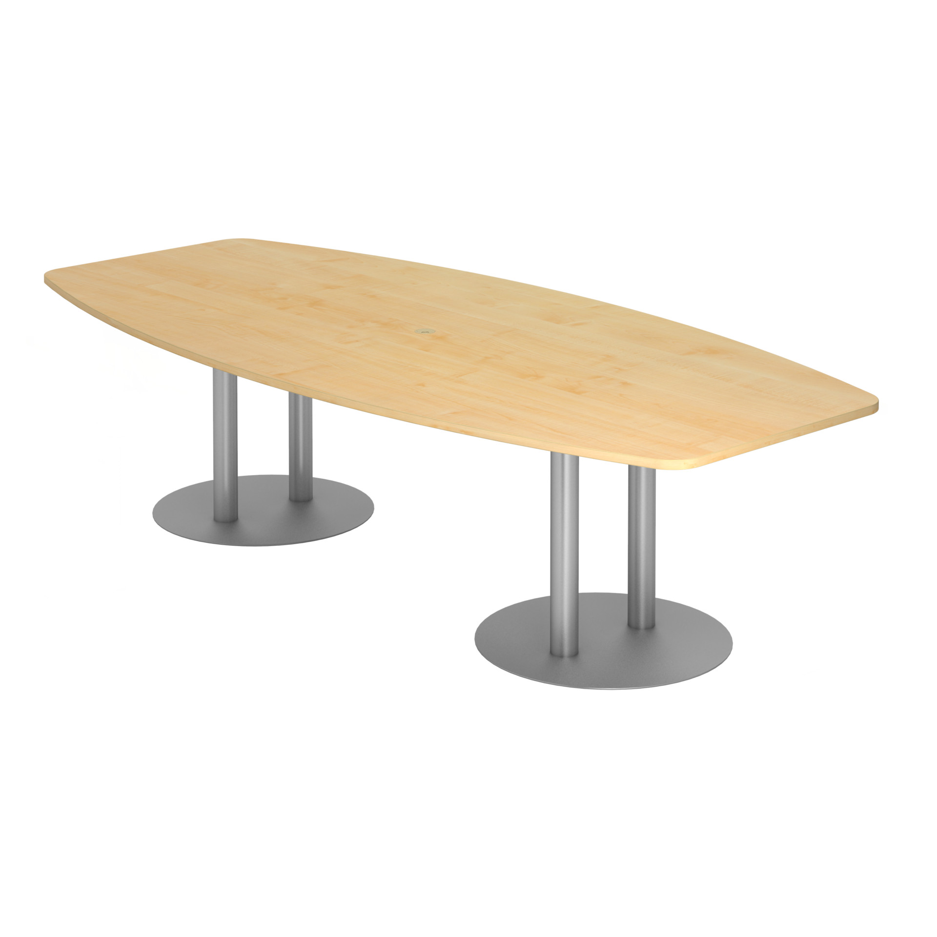 Tischplatten aus hochwertigen melaminharzbeschichteten Spanplatten nach DIN 68765, Emissionsklasse E1 in blend- und reflexfreier Micro-Feinstruktur. 25 mm stark, mit gerundeten 2-mm-ABS-Kanten.