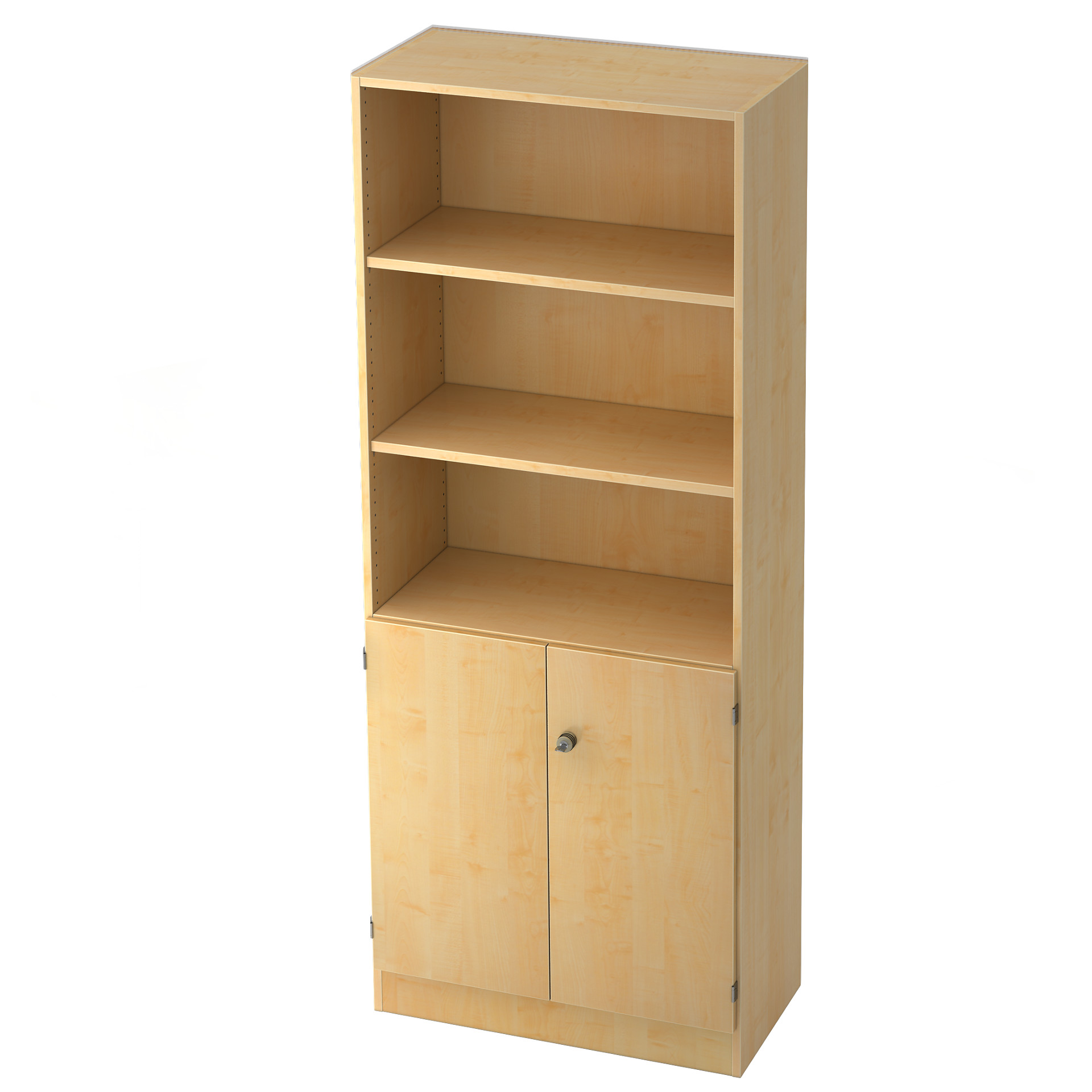 Korpus-Bauweise, d. h. jeder Schrank kann für sich allein stehen. 4 Sockelfüße von innen durch den Boden verstellbar. Vorderkanten mit gerundeten 2-mm-ABS-Kanten. Böden 19 mm stark, im Raster von 32 mm höhenverstellbar auf Metall-Bodenträgern. 2004 mm hohe Türen mit Ganzmetallschloss mit Dreipunktverriegelung. Drehknopf mit Sicherheits-Zylinderschloss. Scharniere 3-dimensional verstellbar in Schnellmontageausführung.