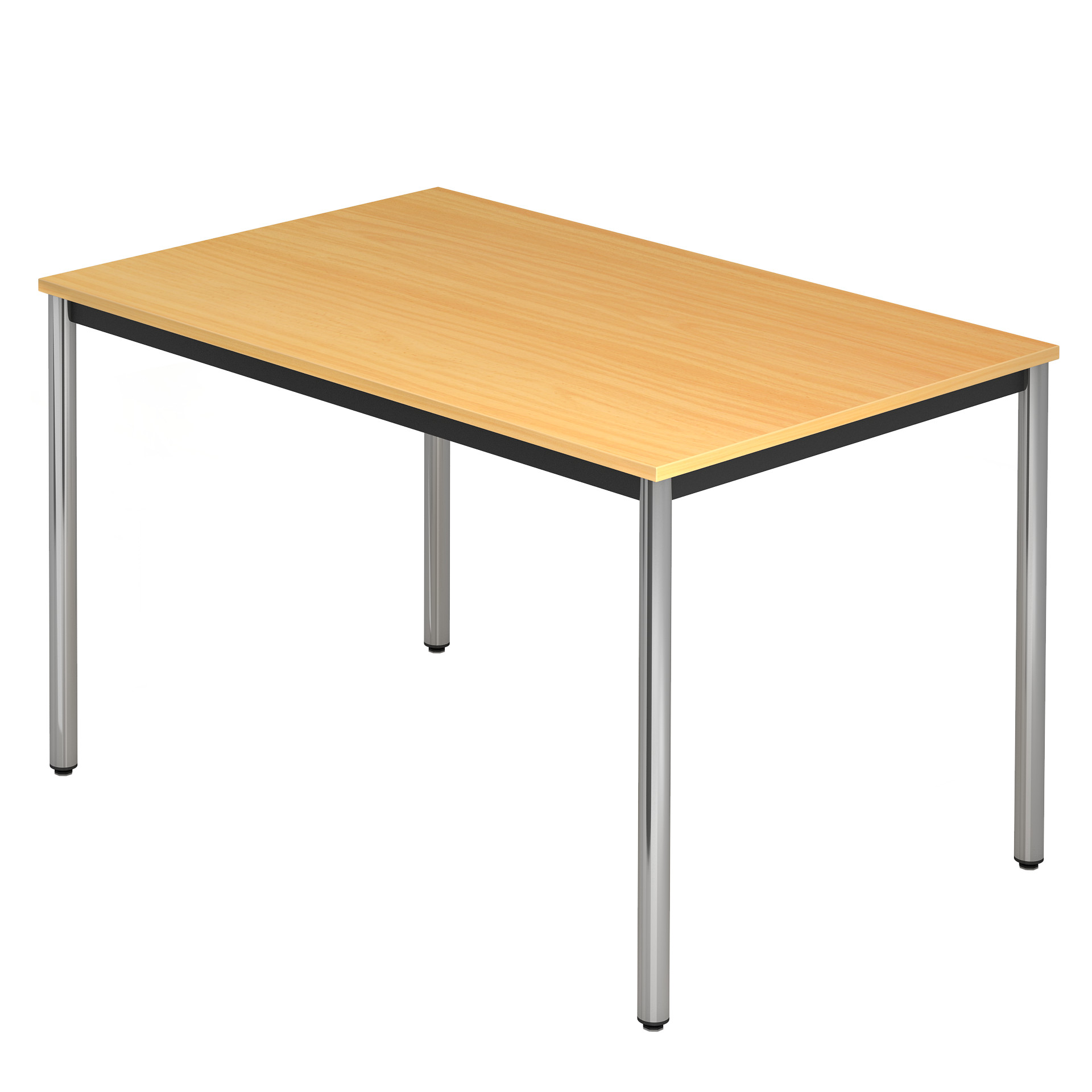 - Tischplatte aus melaminharzbeschichteter 19 mm starker Spanplatte nach DIN 68765, Emissionsklasse E1 in blend- und reflexfreier Micro-Feinstruktur.