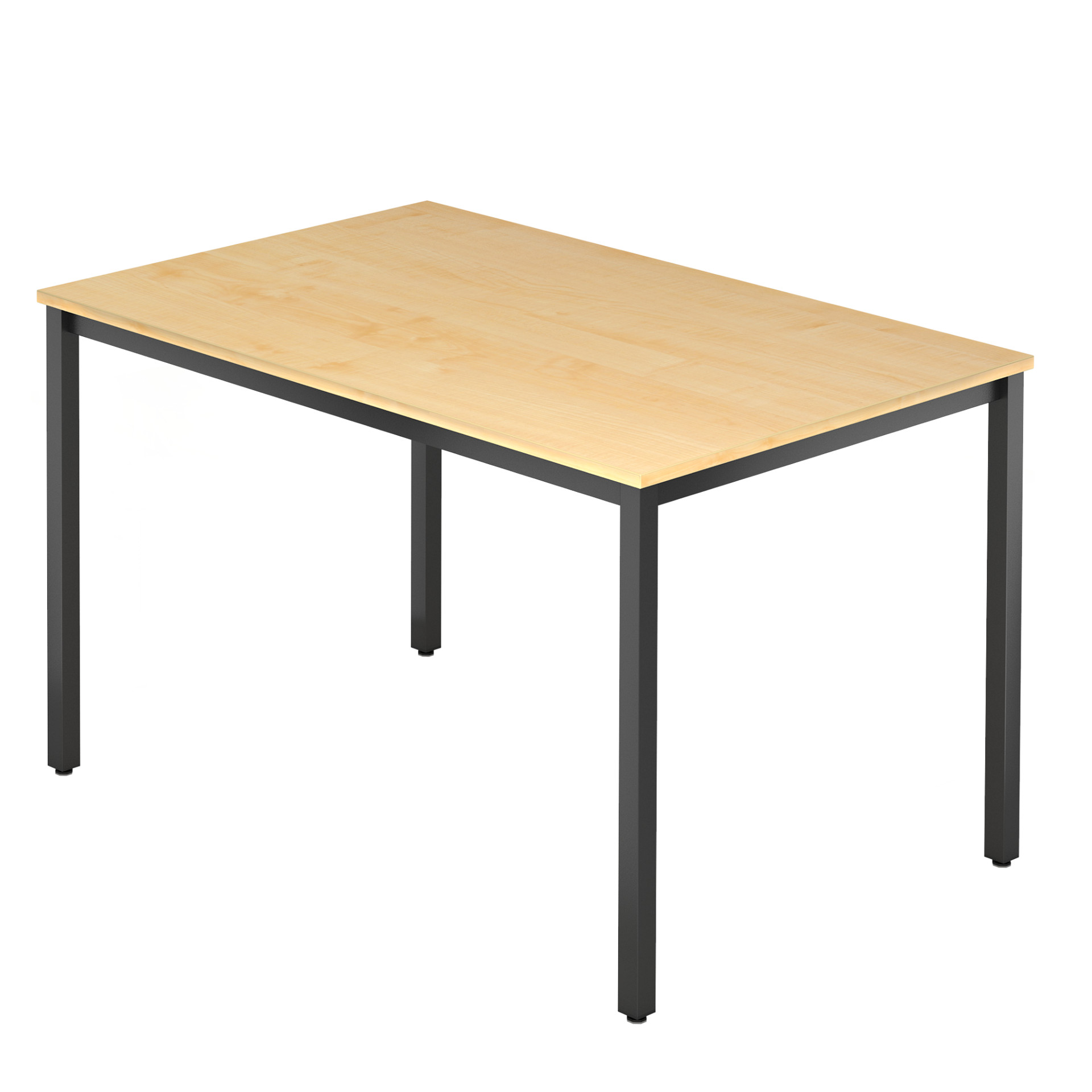 - Tischplatte aus melaminharzbeschichteter 19 mm starker Spanplatte nach DIN 68765, Emissionsklasse E1 in blend- und reflexfreier Micro-Feinstruktur.
