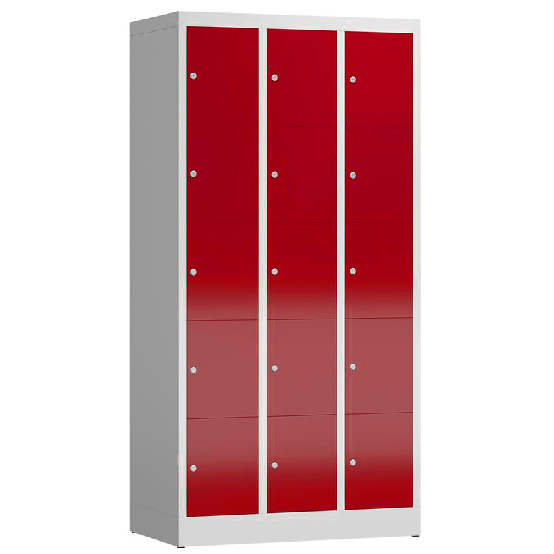 3 Abteile à B 295 mm, 15 Fächer jeweils mit Zylinderschloss
