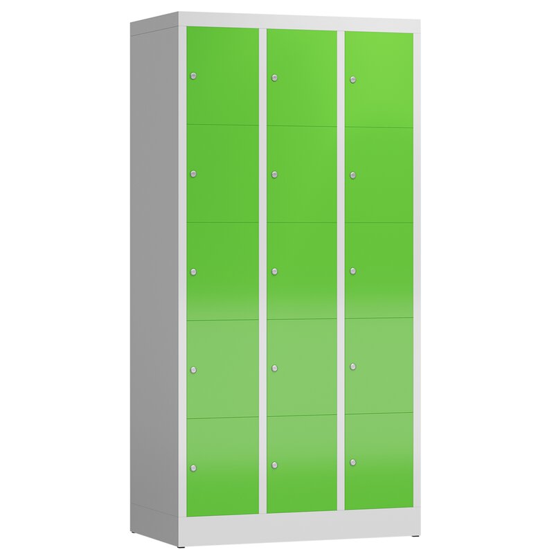 3 Abteile à B 295 mm, 15 Fächer jeweils mit Zylinderschloss