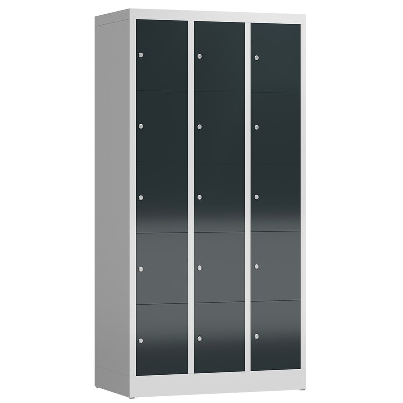 3 Abteile à B 295 mm, 15 Fächer jeweils mit Zylinderschloss