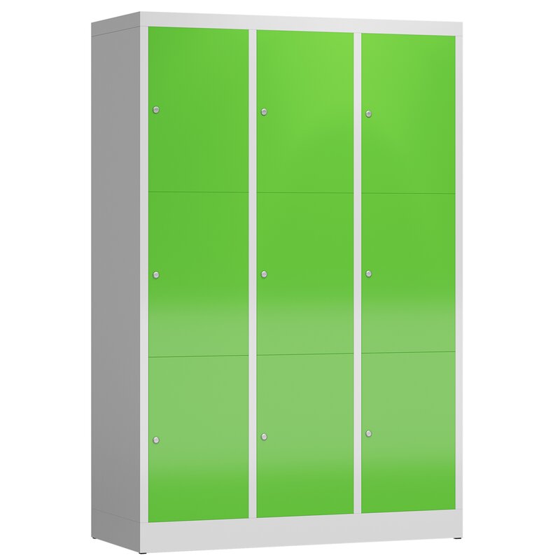 3 Abteile à B 395 mm, 9 Fächer jeweils mit Zylinderschloss