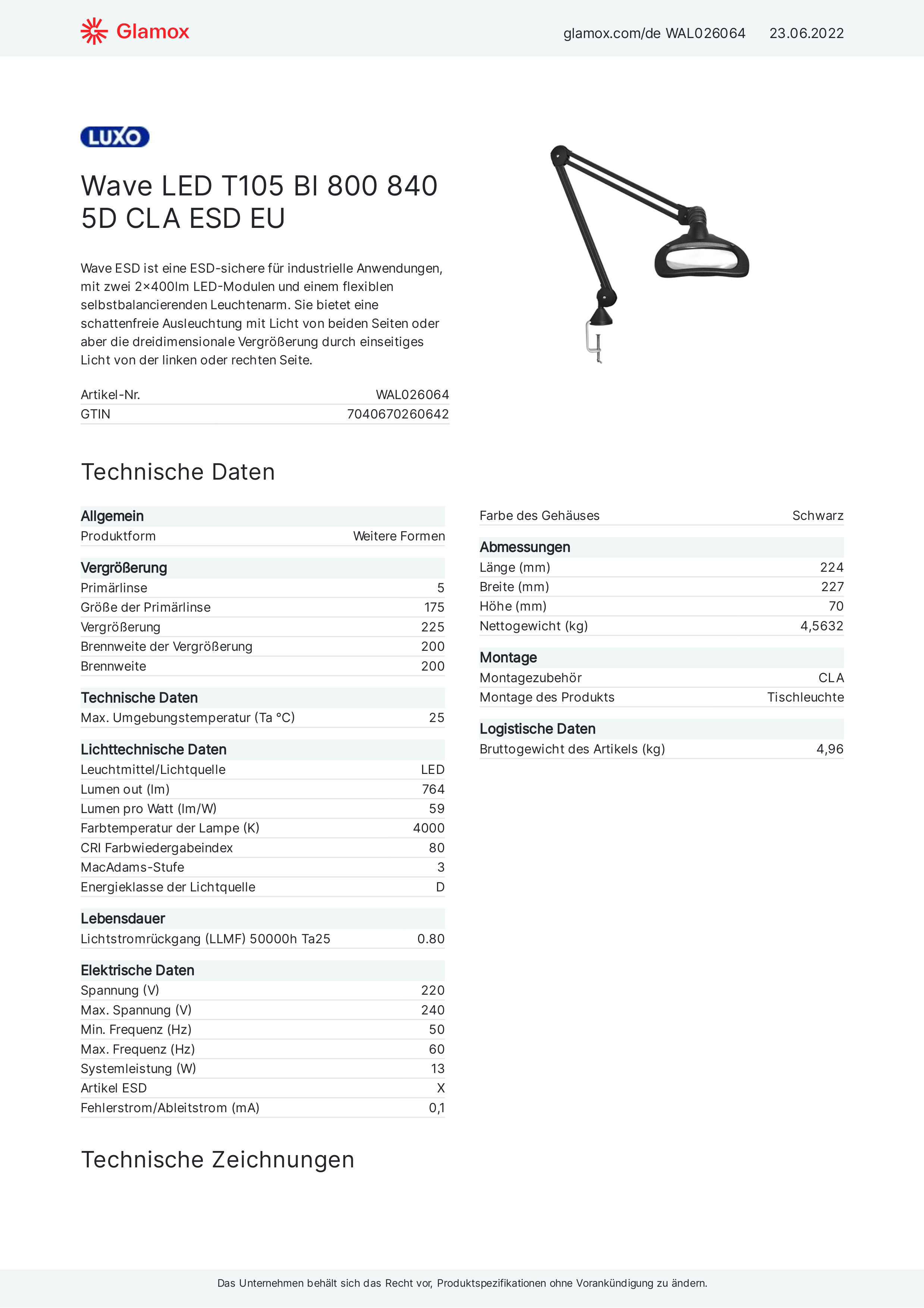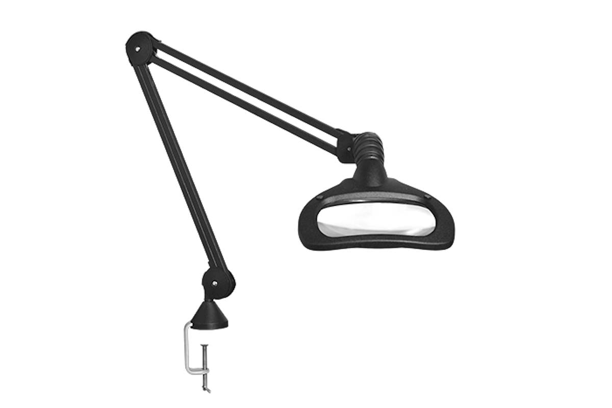 Ausgestattet mit zwei 6W LED-Modulen. Bietet eine Schattenfreie Ausleuchtung oder die dreidimensionale Vergrößerung durch einseitiges Licht von links oder rechts. Armlänge 1050 mm. Integriertes LED-Betriebsgerät. Mit 3,5 oder 5 Dioptrien Kronglas-Linse. Weitere Vergrößerungs-Linsen auf Anfrage bestellen.