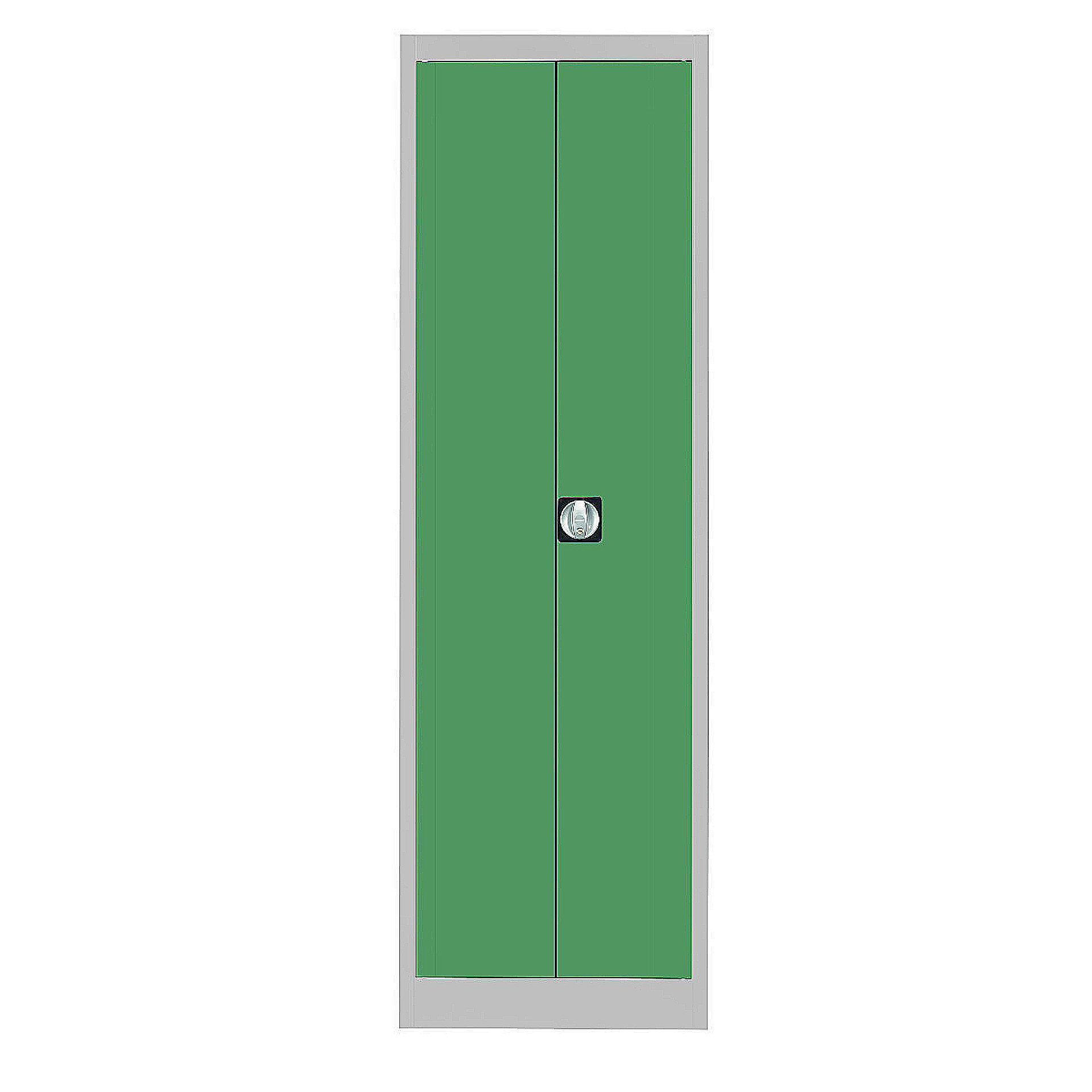 Da der fast zwei Meter hohe, günstige Stahl-Flügeltürenschrank Typ 957-V eine so platzsparende Breite hat, bietet es sich an, mehrere dieser Modelle zu bestellen, wenn Sie den Platz haben. Wählen Sie eine Farbe für alle Schränke aus oder kombinieren Sie für eine etwas buntere Schrankfront mehrere Farben miteinander: lichtgrau/lichtgrau, lichtgrau/resedagrün, lichtgrau/brillantblau, lichtgrau/rubinrot.