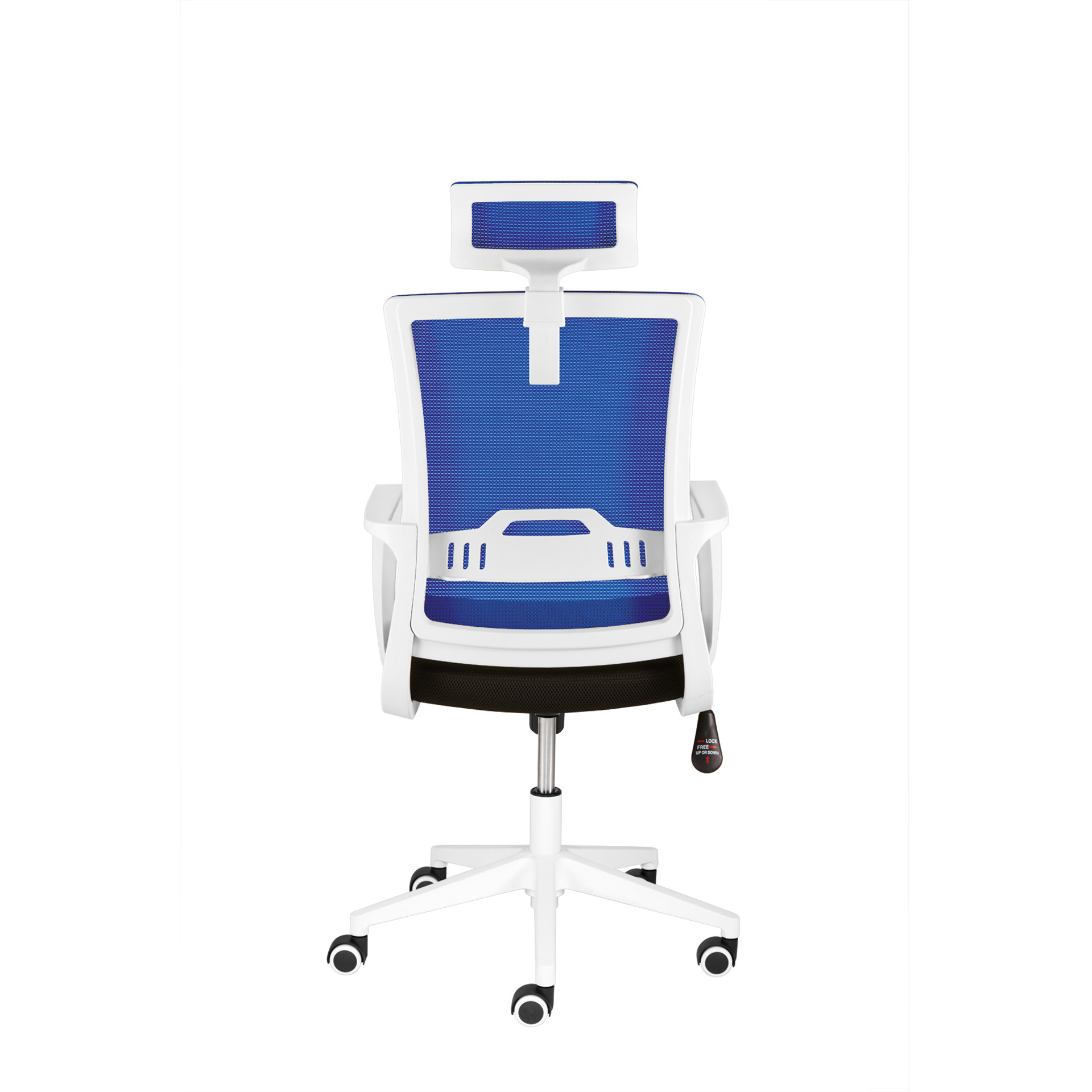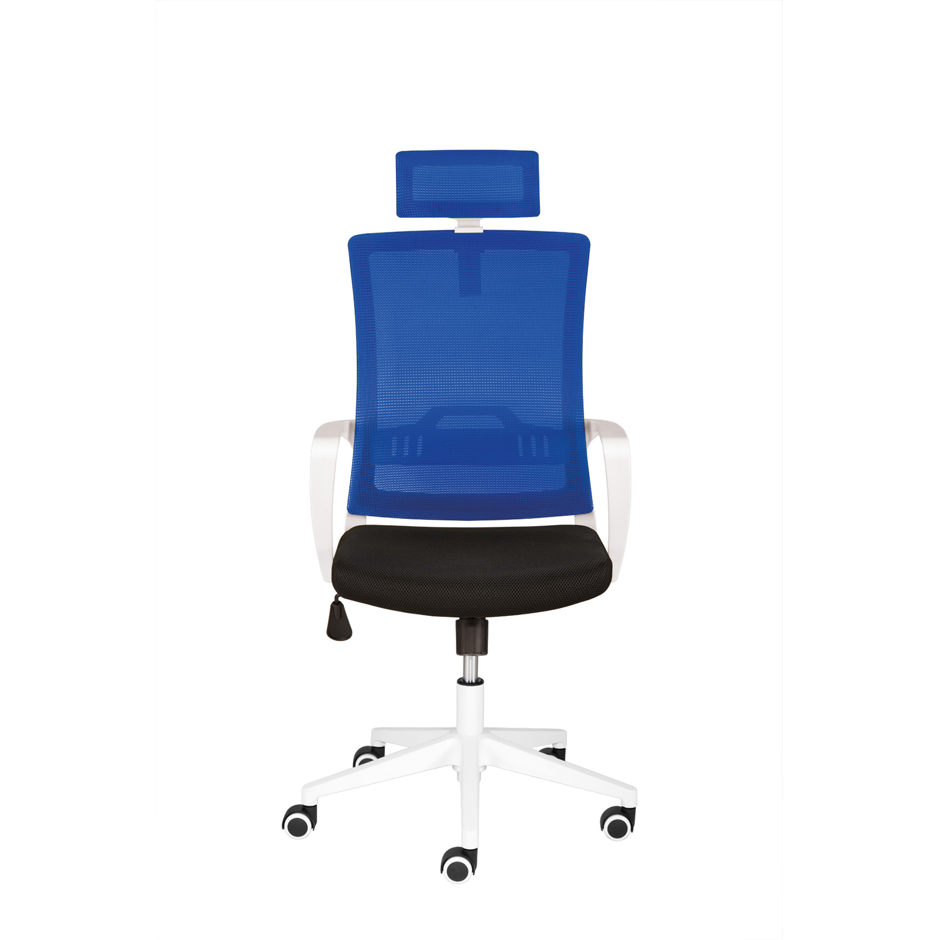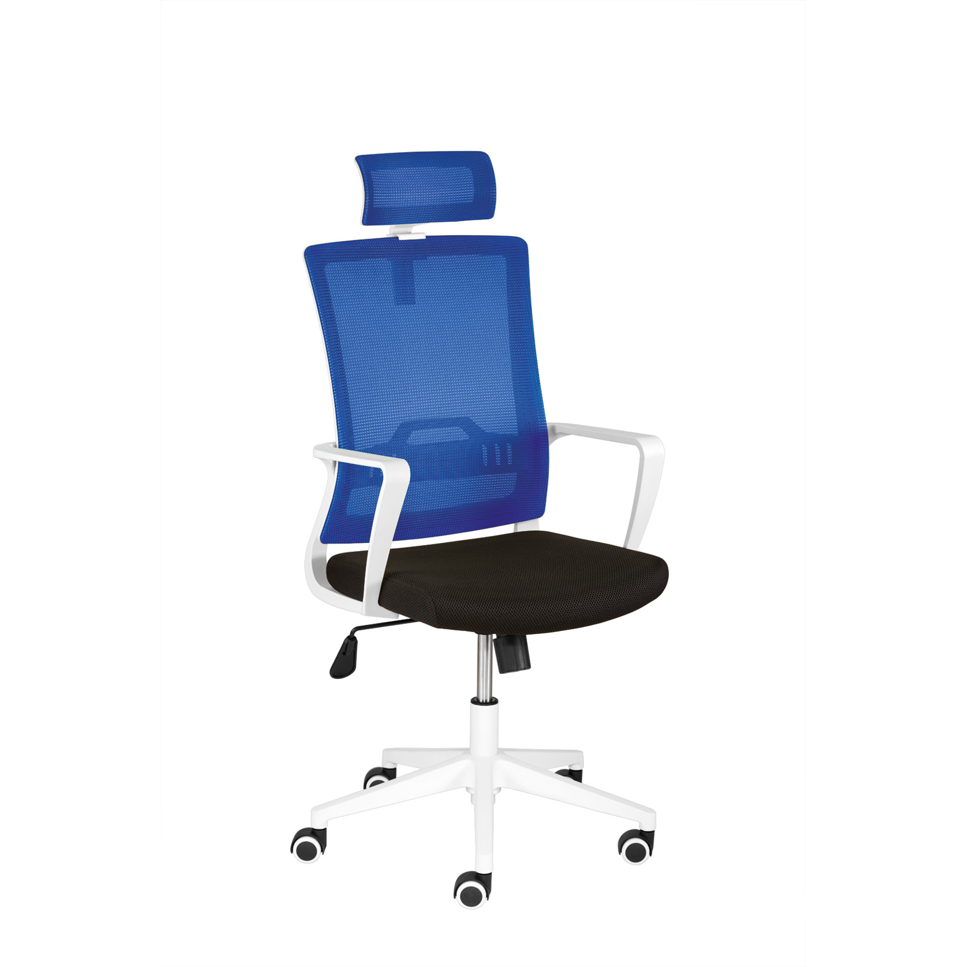 Der Stuhl ist mit einem Kunststoff-Fußkreuz in Weiß ausgestattet, das ihm eine elegante Note verleiht. Die mitgelieferten Universalrollen sind auch für Hartböden geeignet und bieten eine hervorragende Mobilität, damit Sie sich auf Ihrem Stuhl frei bewegen können.