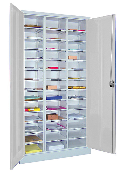 - 3 x 13 = 39 Fächer, je lichte Fachbreiten: linke und rechte Reihe 270 mm, mittlere Reihe 290 mm x Fachhöhe 118 mm.
