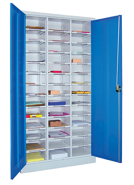 - 3 x 13 = 39 Fächer, je lichte Fachbreiten: linke und rechte Reihe 270 mm, mittlere Reihe 290 mm x Fachhöhe 118 mm.
