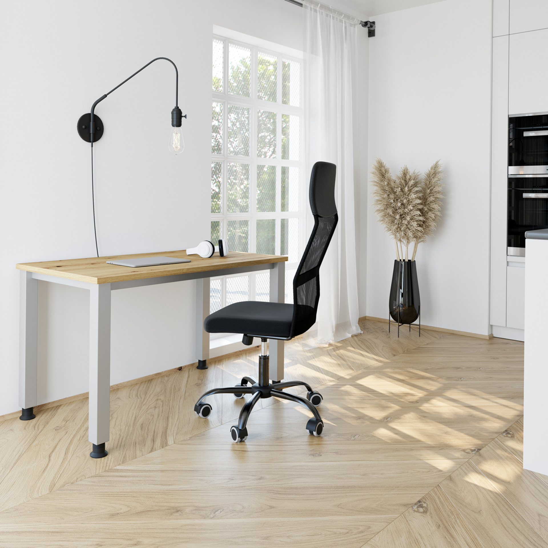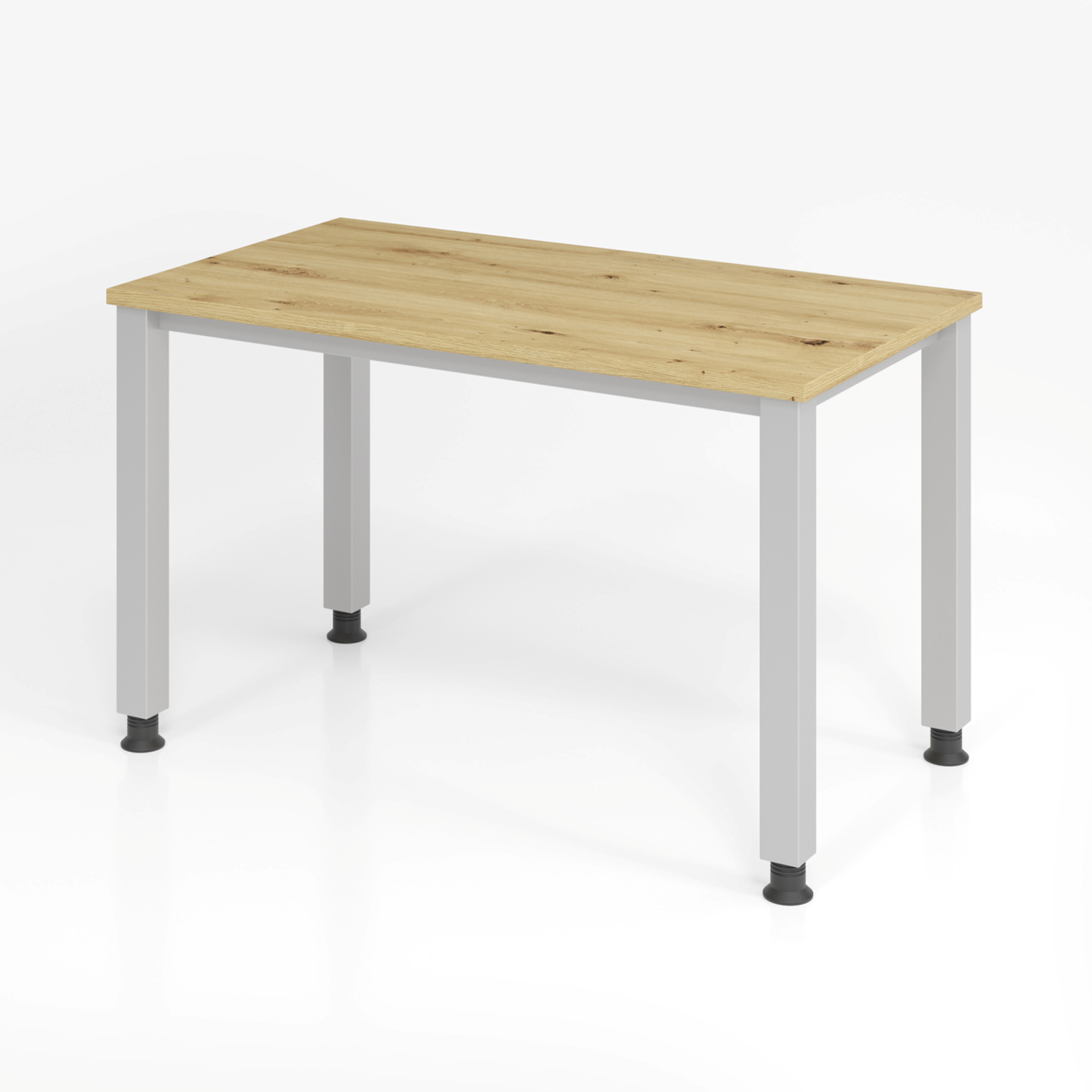 Das stabile 4-Fuß-Gestell aus pulverbeschichtetem Stahl in Silber überzeugt durch seine hochwertige Verarbeitung. Gefertigt aus 60 mm starken Quadratrohren, garantiert es eine herausragende Standfestigkeit und Langlebigkeit. Die Pulverbeschichtung schützt das Gestell zuverlässig vor Kratzern und Korrosion, sodass der Schreibtisch auch bei intensiver Nutzung seine ansprechende Optik und Stabilität behält. Mit den Maßen von 1200 mm Breite und 672 mm Tiefe bietet der Q-Home Schreibtisch ausreichend Platz für Ihre Büroausstattung, ohne dabei zu viel Raum einzunehmen.