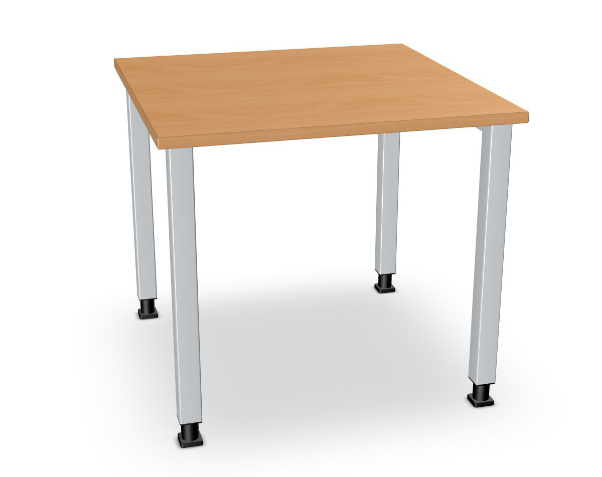 Schreib- und Besprechungstische: 25 mm starke Tischplatten. Pulverbeschichtetes Stahl-Untergestell mit oder 4 Quadrat-Stahlrohrbeinen in 50 x 50 mm, höhenverstellbar von 680 - 820 mm.