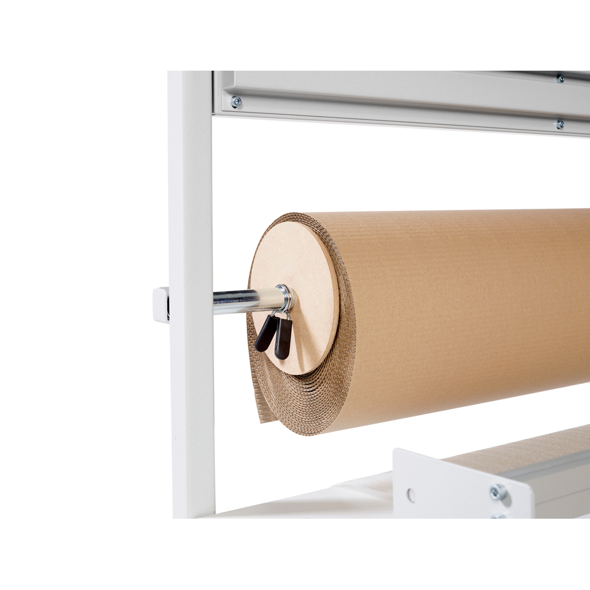 Rollenhalterung Fixiert die Rollen für Verpackungsmaterial. Hergestellt aus MDF. Für Achse mit Ø 25 mm. Enthält 2 Teiler und 2 Federsicherungen.